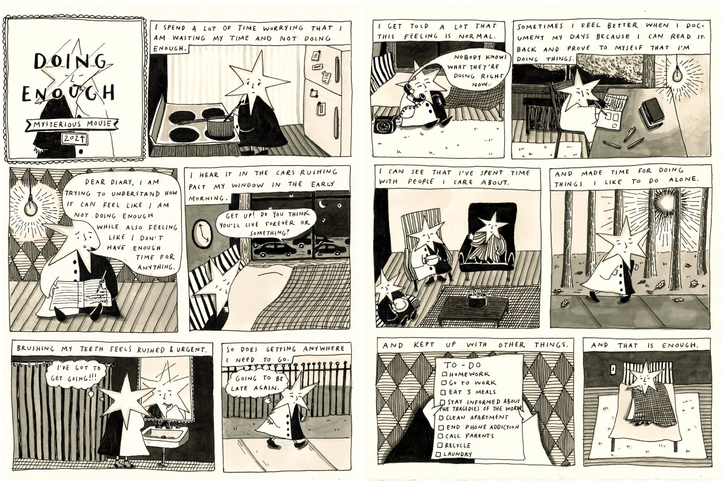 Doing Enough, 2025, two 8.5 x 11" pages, pen and ink on paper